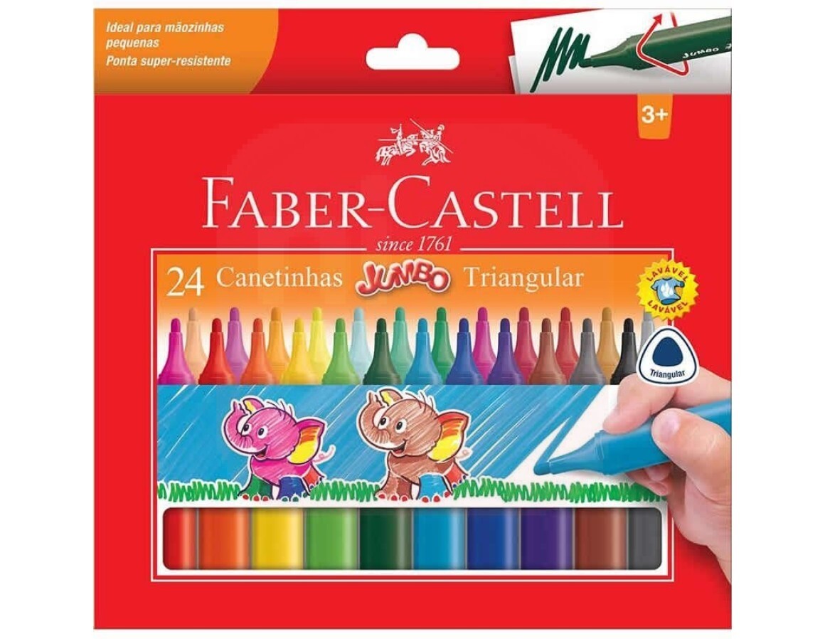 Canetinha 24 Cores Jumbo Triangular - Faber-Castell