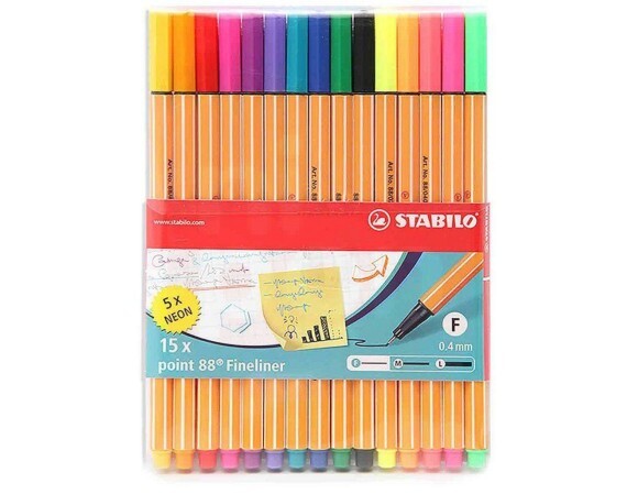 Caneta Stabilo Point 88 - Kit 15 Cores