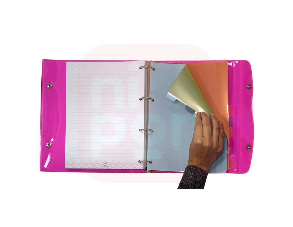 O Fichário Bubble é um sucesso em vendas pela sua inovação, estilo e praticidade. Ele é um boa alternativa para quem quer o tamanho de um caderno, mas gostaria da versatilidade ao inserir ou retirar folhas, pois as argolas articuladas abrem, possibilitando esta ação.