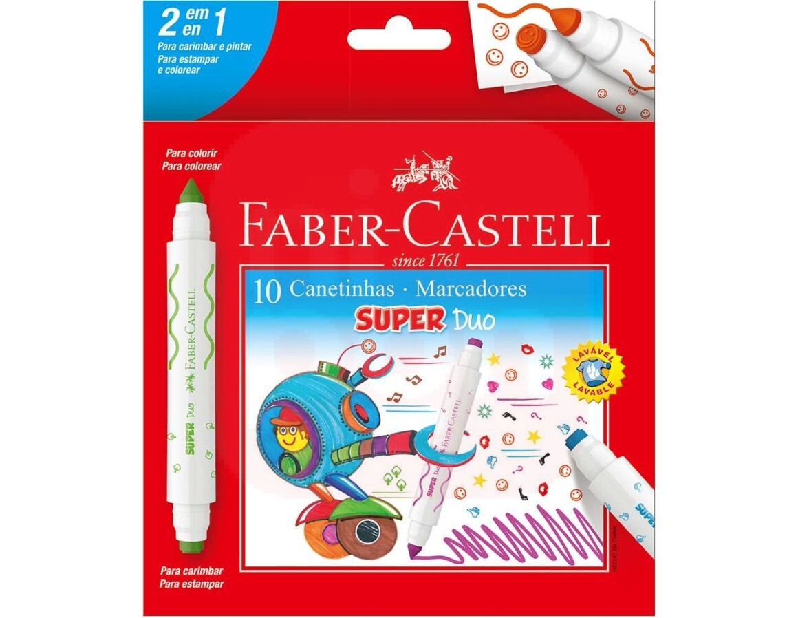 Canetinha 10 Cores SuperDuo + Carimbo - Faber-Castell