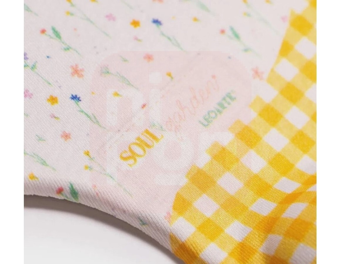 Cottagecore: uma tendência de moda e comportamento que está bombando nas redes sociais. Na cor amarela, possui formato anatômico com apoio de pulso, é revestido de tecido estampado e traz acabamento em solda.