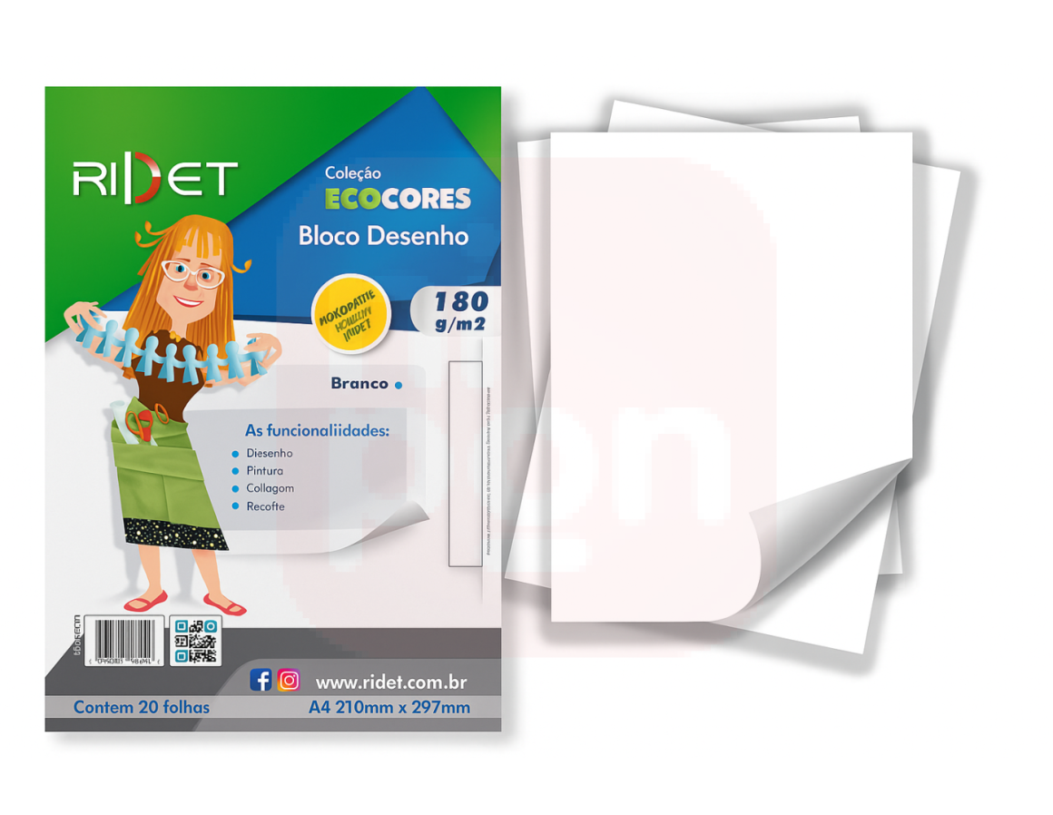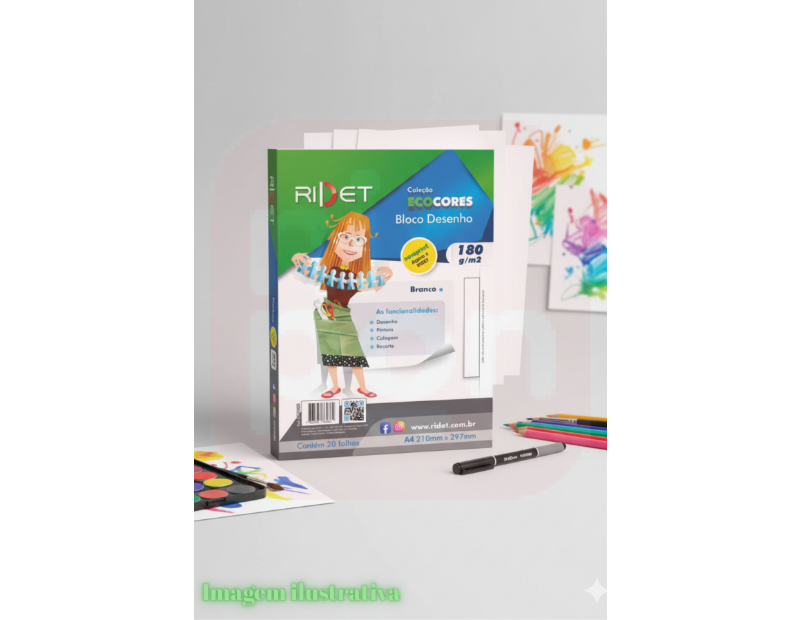 2. Bloco Desenho Ecocores A4 180gr 21x29,7 Cm 20fls Ridet