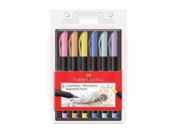 Caneta Pincel Supersoft com 06 Cores Tons Pastéis Faber-Castell